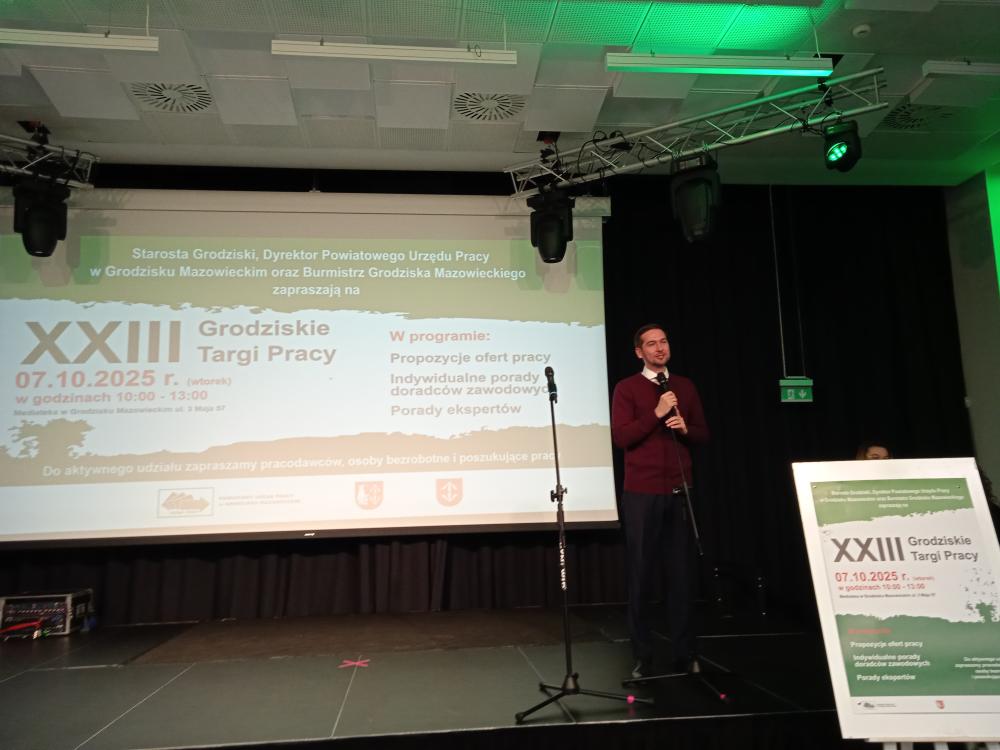 7 października 2025 r. w Mediatece przy ul. 3 Maja 57 w Grodzisku Mazowieckim, odbyły się XXIII Grodziskie Targi Pracy. Wystawców i gości powitali: Starosta Grodziski pan Marek Wieżbicki, Dyrektor Powiatowego Urzędu Pracy pani Agnieszka Adachowska oraz Burmistrz Grodziska Mazowieckiego pan Tomasz Krupski.